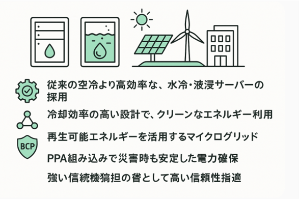 水冷・液浸による高効率冷却でエネルギー消費と環境負荷を大幅に低減。