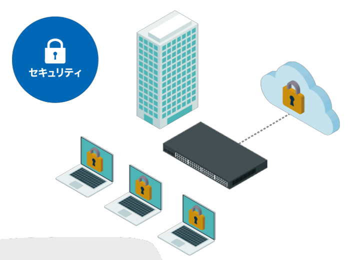 快適にクラウドサービスを利用するために、安全な社内ネットワーク環境を構築します。またクラウド側のセキュリティを担保しながら、接続時に利用者と端末を確認し、必要な範囲だけアクセスを許可し、クラウドへの通信を直接行える仕組みを導入することで、不正アクセスを防ぎながら、リモートワークや拠点間通信を実現します。