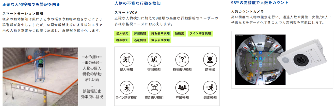 高いコストパフォーマンスでリモート監視や人物検知などのご要望に柔軟にお応えします